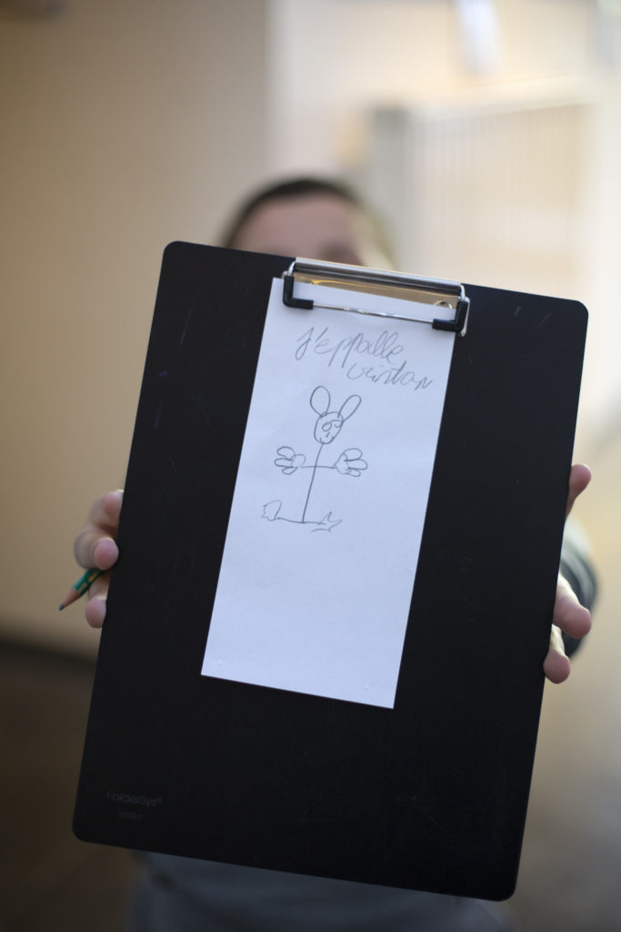Par équipe, les enfants doivent retrouver un tableau parmi les collections à partir d’une interprétation, ils doivent ensuite répondre à des questions qui font appel à l’observation et à l’imagination.