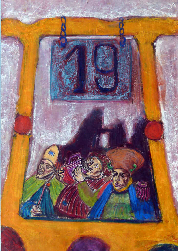 Son travail graphique et pictural se démarque des enseignements académiques par sa spontanéité. A côté des thèmes classiques, il aborde la thématique de la mort et du macabre. Puis oriente ses recherches vers l’imagerie populaire de la publicité et des illustrations. C’est là qu’est né son intérêt pour le monde de la ronde, le monde du carnaval et le monde à l’envers.