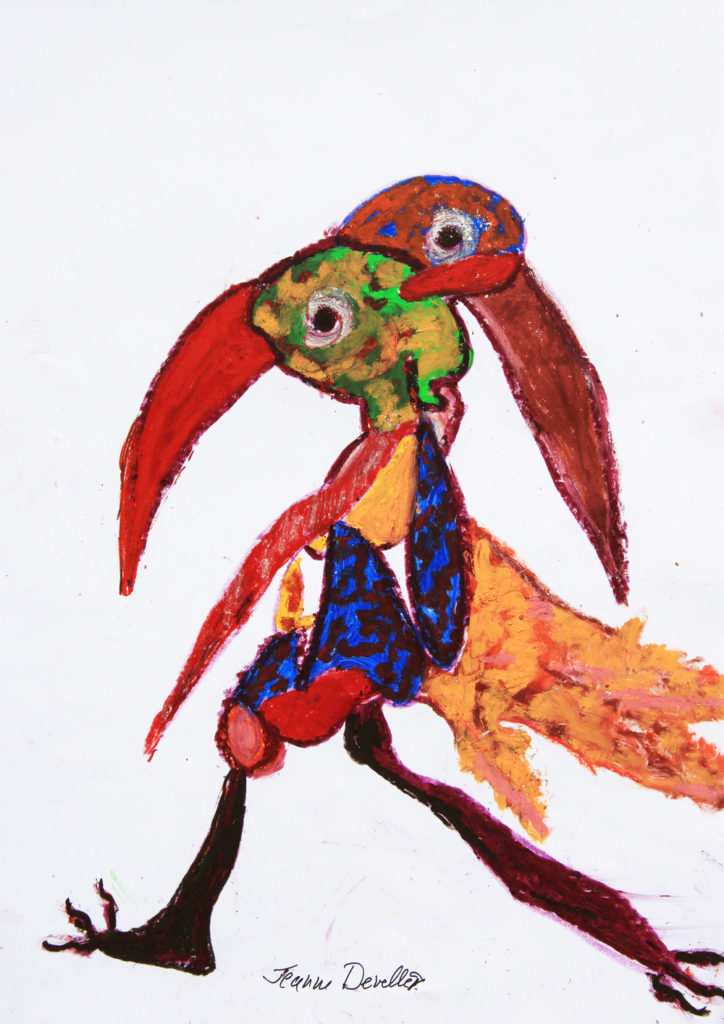Elle réside un an aux Etats-Unis, puis rentre en France. Jeanne Develle s’intéresse à la représentation du monde par les images, dessins, illustrations, photographies, peintures – ce qui lui permet de présenter des artistes dans les expositions qu’elle organise à Paris, dans sa galerie. Puis elle commence à dessiner.