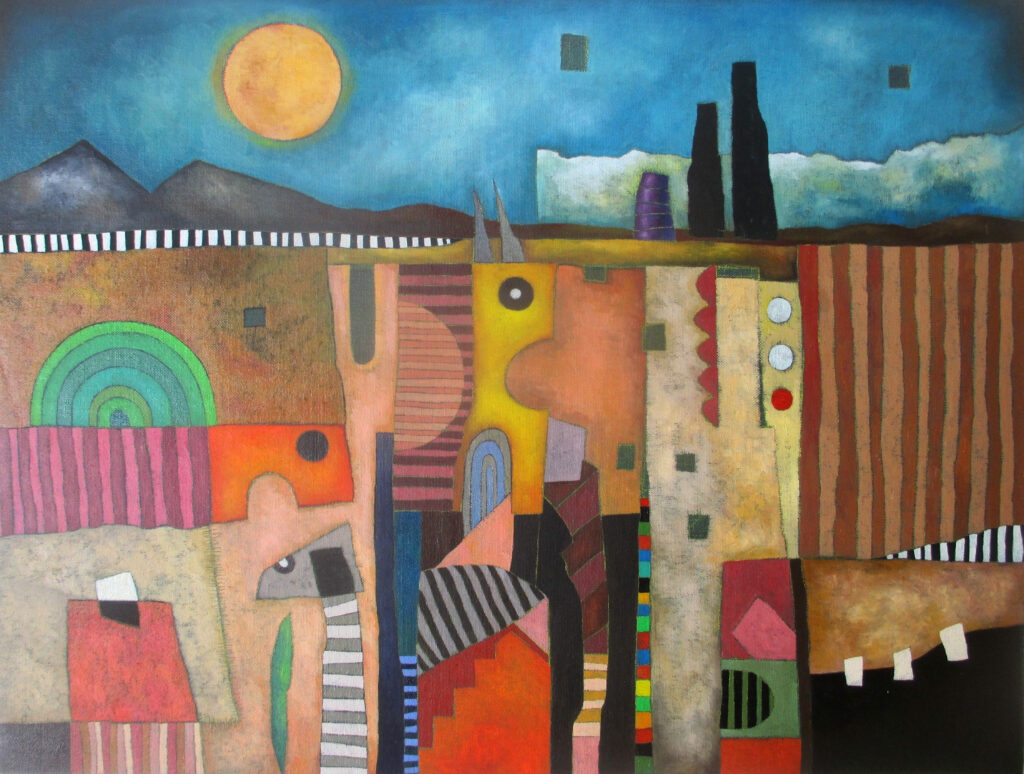 J’utilise la peinture à l’huile et la peinture acrylique, parfois un mixte des deux, sur toile ou panneau de bois.
